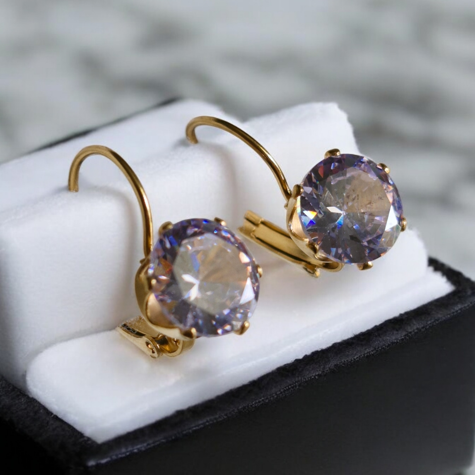 Elegant gold earrings with a single brilliant zirconia that shines like a diamond — timeless and refined.